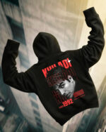 Bold, premium streetwear hoodie in classic black, featuring an iconic monochrome portrait graphic with red typographic accents. Designed with a relaxed fit, kangaroo pocket, and soft durable fabric, it delivers a confident urban look for everyday wear, concerts, travel, and standout casual styling.